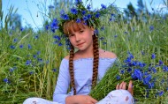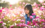 花丛中的小女孩儿图片