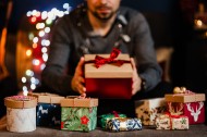 收到圣诞节礼物的男人图片