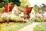 清新水彩画乡村风景图片