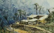 乡村风景水彩画