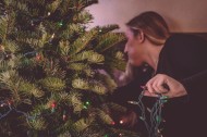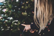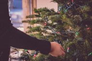 装饰圣诞树的女孩图片