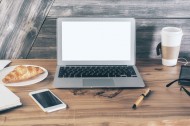 苹果笔记本电脑放在木桌上的图片