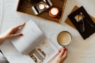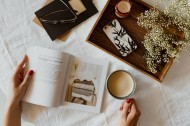 一边看书一边喝咖啡的女孩图片