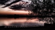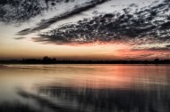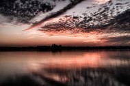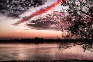 湖面火烧云风景图片