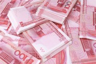 红色流通的人民币图片