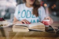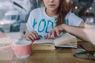 在咖啡店看书的美女图片