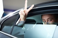 坐在车上的白领图片
