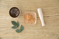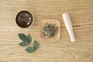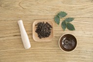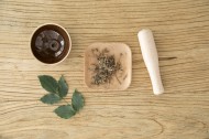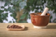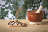 放在桌上准备捣碎的中药图片