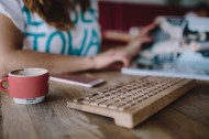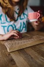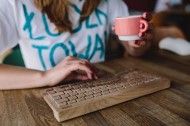 手在敲打木制键盘的图片大全
