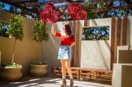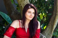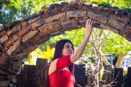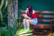 穿红色上衣的美女图片
