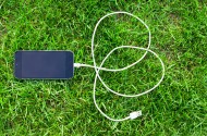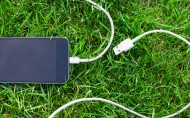 草地上的手机图片
