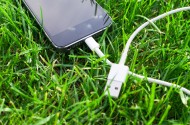 草地上的手机图片