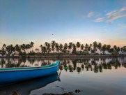 水面上的小舟图片