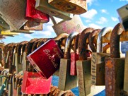 一串挂在钢筋上的锁图片