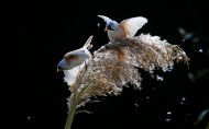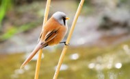 芦苇枝上的文须雀图片
