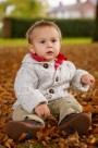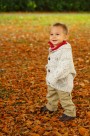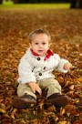 坐在枫叶上玩耍的可爱小男孩图片大全