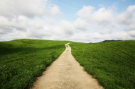 蓝天草地小路图片