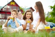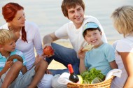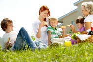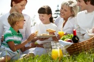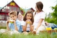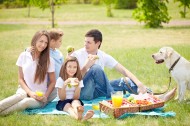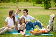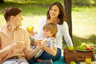 在户外野餐的一家人图片