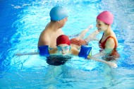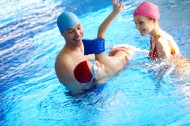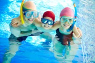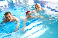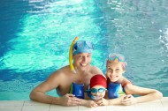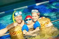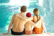 游泳池里的一家人图片