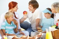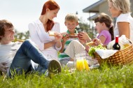 在户外野餐的一家人图片