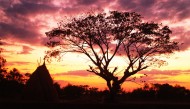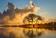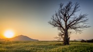 夕阳映照下的一棵树图片